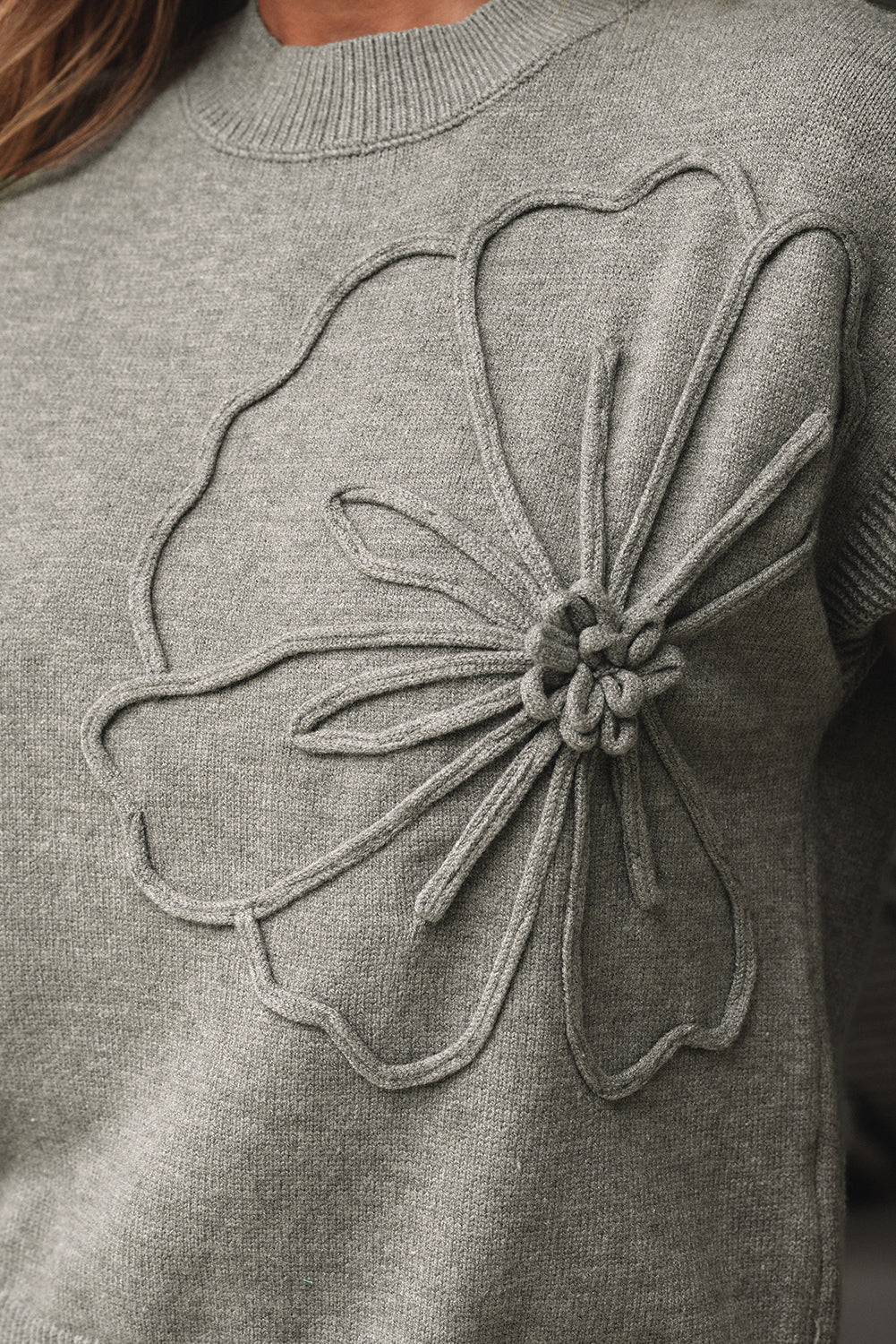 Stacey B's High Flower Pattern Ribbed Trim Short Sleeve Boxy Sweater