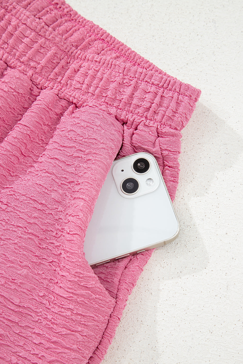 - The V-neck shirt and pocketed shorts offer both style and function.