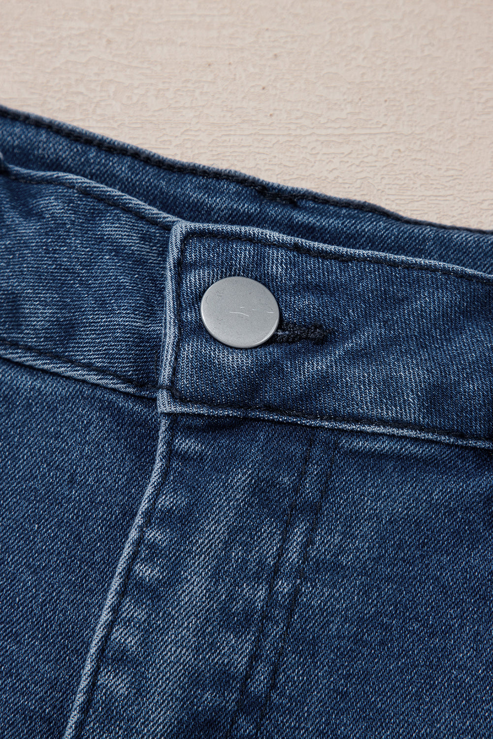 Stacey B's Sail Blue Scalloped Hemline Acid Wash High Waist Denim Shorts